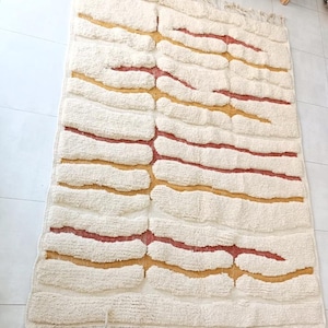 This traditional Moroccan rug are handwoven by the Berber Tribes, from which the rugs get their name. It's a authentique handmade Moroccan rug woven from natural virgin wool by women in that area.
